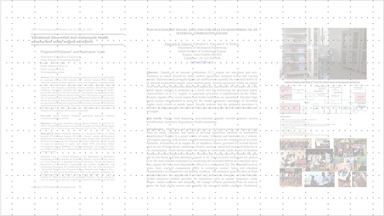 He was involved in developing the in-house test cell facility for testing vehicle components. At the research and technology centre of a global power technology leader, he developed a methodology for the selection of suitable isolators to mount the ECUs on the engine by considering the random vibrations. He developed a methodology for assessing passenger discomfort and vehicle performance as a research on NVH. He established a methodology for the diagnosis of crack, wear, and degradation issues, and the prognosis of the remaining health of an engine as a research on IVHM. He supported the National Program on MEMS and Smart Systems by implementing the IVHM application in the automotive domain.